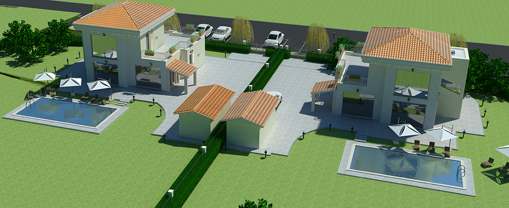 DESCRIZIONE LAVORO: Realizzazione di numero due ville singole su due livelli così composte: il piano terra si sviluppa per una superficie commerciale di mq. 100 con ampio soggiorno, cucina abitabile, due camere da letto ed un bagno; la scala disimpegnata porta al livello superiore dove sono state realizzate due ampie camere da letto con ciascuna il proprio bagno privato e terrazzo solarium. Il box doppio è esterno posto sullo stesso piano della villa. La tipologia costruttiva è in cemento armato per la parte strutturale, il tetto in legno lamellare appositamente coibentato ed i tamponamenti esterni con mattoni poroton + cappotto, il tutto per poter raggiungere un alta efficienza energetica.