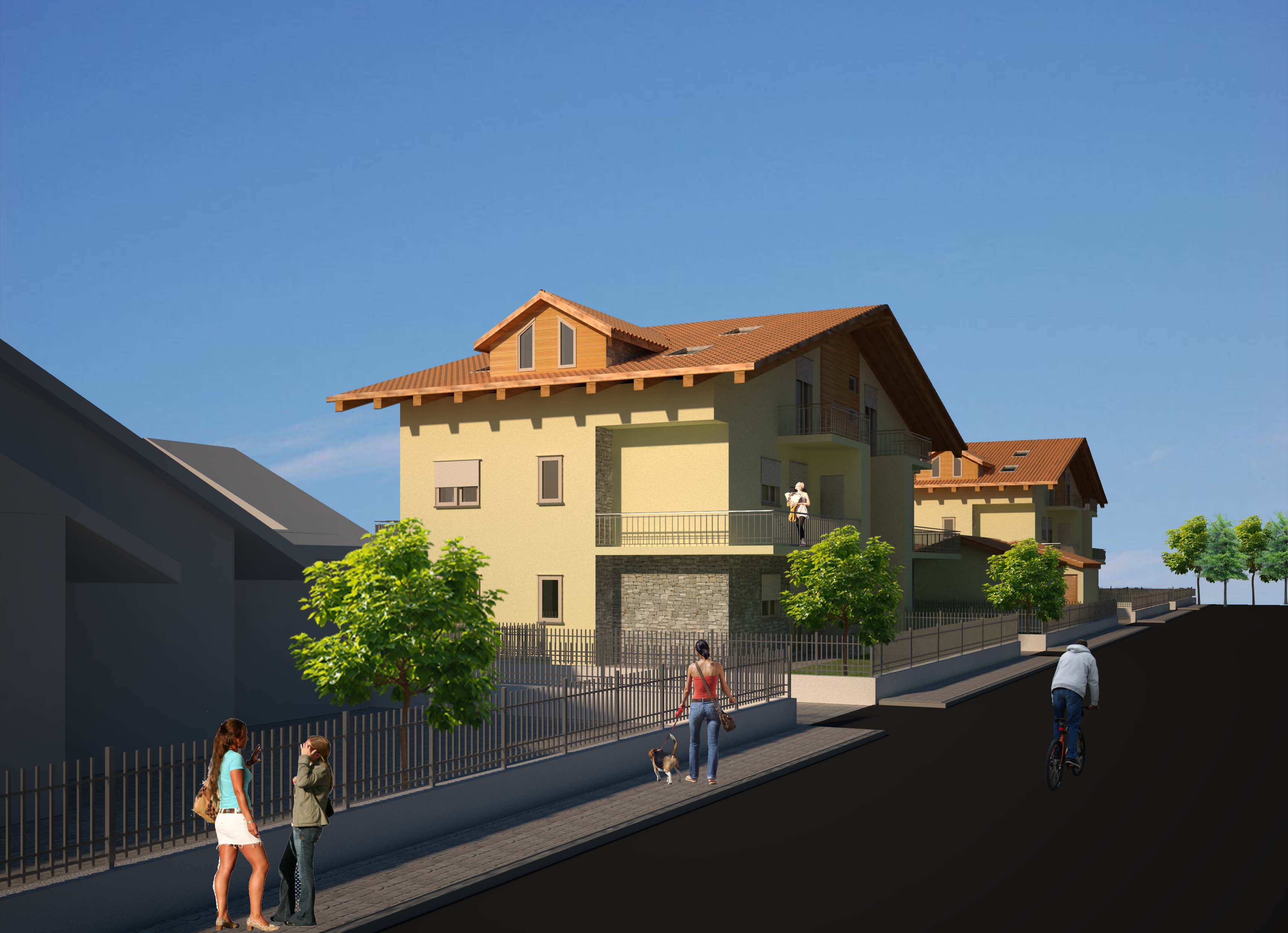 DESCRIZIONE LAVORO: Realizzazione di numero due edifici composti da numero 4+2 appartamenti e mansarde e 12 box auto esterni posti sullo stesso piano. Gli appartamenti del piano terra sono dotati di giardino ad uso esclusivo sui tre lati, mentre gli appartamenti al piano primo collegati con la mansarda abitabile; le finiture interne saranno contraddistinte da palchetti e piastrelle di grandi dimensioni. La tipologia tecnologica di questo edificio è stato concepito con una struttura portante in legno Xlam e tetto in legno lamellare a vista. Le murature saranno tutte eseguite in pannelli in Xlam e completate con cappotto intonacato per raggiungere alta efficienza energetica.